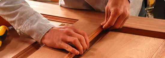 Перед тем, как зафиксировать филенку штапиком, необходимо убедиться, что по периметру филенки в четверти присутствует технологический зазор. Он необходим для того, чтобы при изменении влажности разбухшая филенка не деформировала дверное полотно.